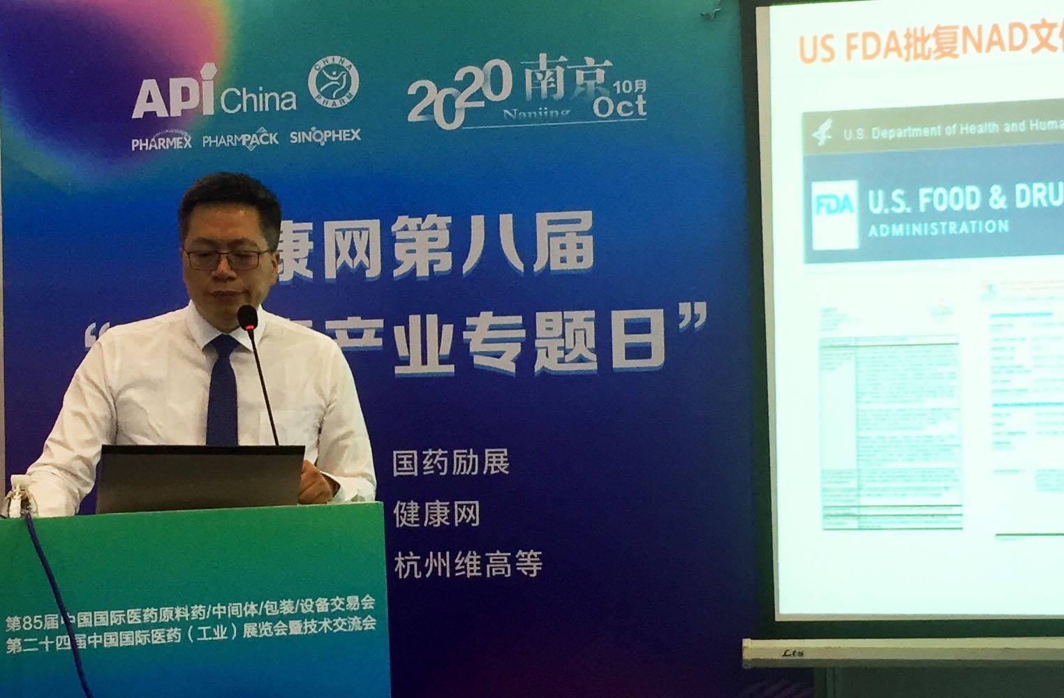 2020年10月14日,第85届中国国际医药原料药/中间体/包装/设备交易会(简称:API China原料药展)在南京国际博览中心开幕。凯时平台生物携浙江苏泊尔制药有限公司一同参加2020南京API CHINA原料药展,凯时平台生物总经理竺博士在展会上做了《NMN的过去、现在和未来的》专题学术报告。