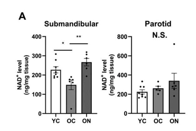 (NMN增加老年小鼠颌下腺中的NAD+水平)